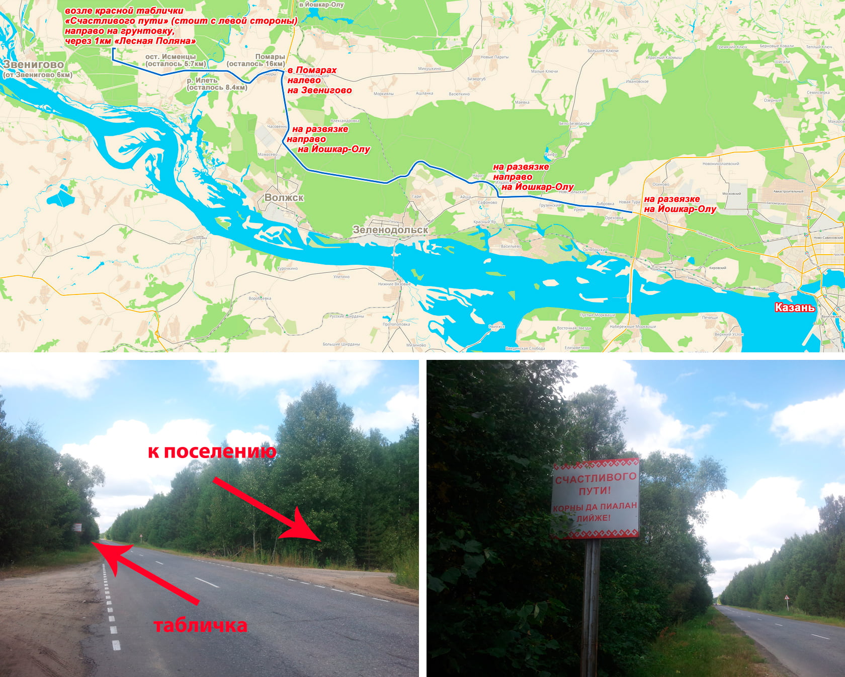 Ехать на Йошкар-Олу. В Помарах повернуть налево на Звенигово. Через 16 км у таблички "Счастливого пути" (неприметная, стоит с левой стороны), повернуть направо на грунтовку, через 1 км Лесная Поляна.